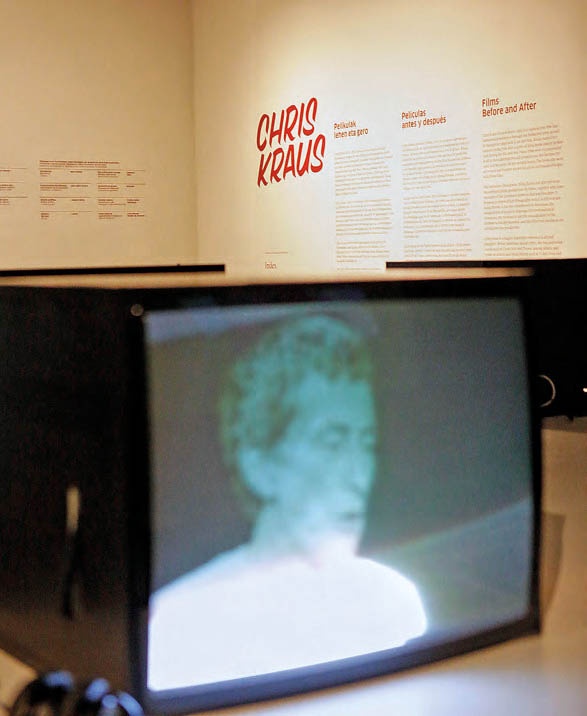Con el nombre ‘Chris Kraus, películas antes y después’ se presenta en la sala Lau Pareta de Tabakalera una exposición que recoge, por un lado, la obra audiovisual de la artista estadounidense, integrada por videos de las películas que realizó desde inicios de la década de los 80 hasta mediados de los 90. Por otro, una selección de sus publicaciones más recientes, textos críticos, ensayos y obras de ficción, títulos difíciles de clasificar con los que ganó cierto reconocimiento dentro del campo del arte, pero que en los últimos años ha logrado trascender este territorio, muchas veces hermético, y llegar a lectores de consumo literario, de mayor número y alcance.