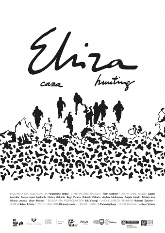 In 1969, artist Rafael Ruiz Balerdi made the short animated film Homenaje a Tarzán (Homage to Tarzan), which ended with an enigmatic «to be continued». Ehiza (Hunting) is its continuation. It accepts Balerdi's aesthetic proposal, but steps away from the colonial perspective of the films that inspired that work to depict the harshness of our own reality: harassment, violence and destruction.