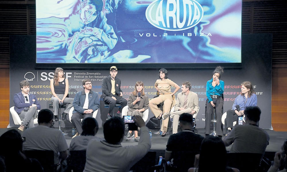 El Zinemaldia es un escenario talismán para el equipo creativo detrás de La ruta. Vol 2: Ibiza, la nueva serie de atresplayer que ayer se presentó en el club de prensa del Kursaal. Sus creadores, Roberto Martín Maiztegui, Clara Botas y Borja Soler (éste último también director) recordaron que hace justo tres años, en ese mismo espacio, presentaron La ruta que, contra todo pronóstico, se convirtió en una de las grandes series de aquella temporada llegando, incluso, a ganar el Premio Ondas. De ahí la ilusión con la que ayer presentaron su nuevo proyecto: “Cuando nos planteamos cómo debía ser la segunda temporada asumimos que tenía que tener algo de precuela y, a la vez algo de secuela, eso nos llevó a plantear dos líneas temporales, una ambientada en la Ibiza de los primeros 70 y otra en la Ibiza de los 90”, comentó el director Borja Crespo. Roberto Martín Maiztegui, por su parte, justificó ese enfoque tan original en el hecho de que “nos permitía llegar más lejos que en la primera temporada a través de un juego de espejos entre dos generaciones, la de los padres del personaje que interpreta Álex Monner y la de éste. Además, eso también nos lleva a hablar sobre cómo una isla remota que era el paraíso de los hippies acabó convirtiéndose apenas veinte años después en capital del ocio mundial”.